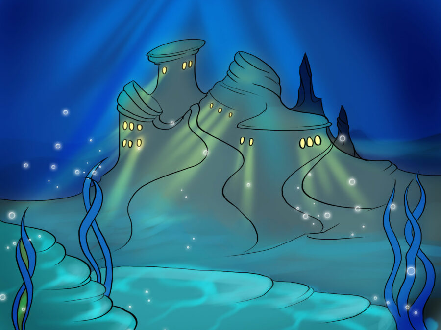 No vayan ustedes a pensar que en el fondo de los océanos no ocurre nada. No es así. Allí crecen las flores más hermosas, y toda clase de peces se deslizan entre ellas. En el fondo del más azul de los océanos se alza el espléndido palacio del Rey del Mar. El tejado está hecho de conchas preciosas que se abren y cierran con el vaivén del agua. Cada una de estas conchas encierra una perla brillante.