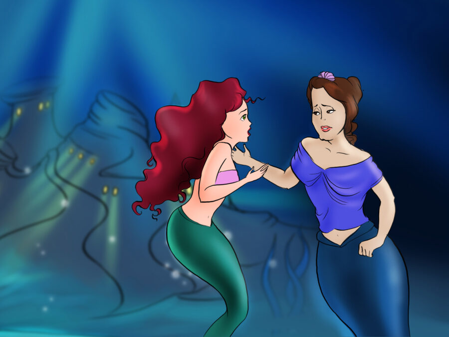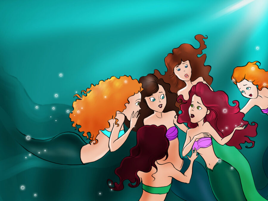 La abuela les contaba todo cuanto sabía del mundo fuera del océano. Nada alegraba más a la pequeña que escuchar estos relatos. “Cuando cumplan quince años”, les contó su abuela, “podrán salir del mar, sentarse en las rocas bajo la luz de la luna y mirar cómo pasan los barcos. Ah, y allí verán todo lo que les he contado. Todas ustedes llevan un año de diferencia, por lo que tu tendrás que esperar cinco años más para que llegue tu turno”, terminó la abuela dirigiéndose a la menor de sus hermanas. “¡Qué triste!”, pensó ella, pues lo deseaba tanto y era la que más tenía que esperar.