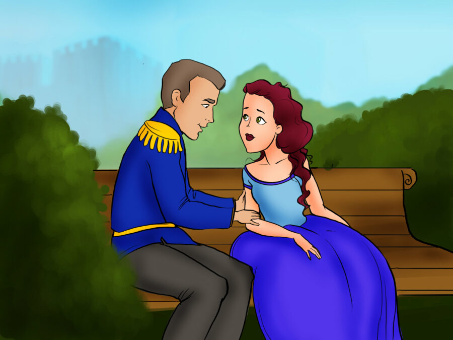 Sin embargo, el príncipe debía casarse y según rumoреs, le estaba destinada por esposa la hija del rey del país vecino. Las noticias la entristecieron mucho, pero el príncipe la calmó, diciéndole: “Debo ir a ver a la princesa, mis padres lo exigen. Pero no me obligarán a tomarla por novia. No puedo amarla, pues no se parece a la hermosa joven que me salvó la vida como le pareces tú. Si debiera elegir a una novia, esta serías tú, mi silenciosa niña amparada”.