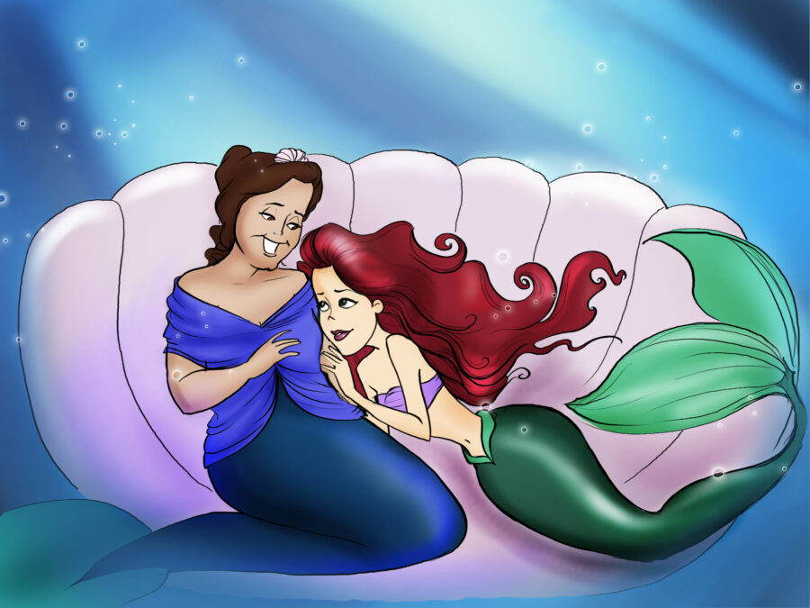 El Rey del Mar cuidaba a sus hijas y su anciana madre era la dueña de casa. Esta era una mujer muy inteligente y, con sus seis nietecitas las princesas del mar, muy cariñosa. Las seis eran hermosísimas, pero la más joven era la más bella de todas. Esta tenía la piel suave y delicada y los ojos azules como el mar. Pero como sus hermanas, ella no tenía pies, ya que su cuerpo terminaba en cola de pez.