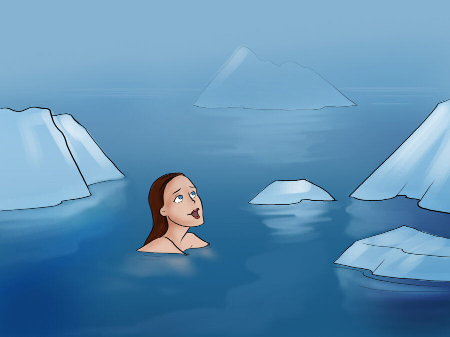 El cumpleaños de la quinta hermana caía en invierno. En él, el mar aparecía verde y flotaban sobre él grandes iceberg que lucían como perlas. Ella no sabía que se llamaban iceberg. Decía que tenían las formas más caprichosas y que brillaban como diamantes. Les contó que al estar sentada tranquila flotando sobre ellos, pensaba que no podía entender por qué los humanos les temían.